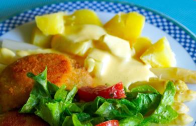 Oblíbený smažený sýr jinak a zdravěji, doplníme čerstvou zeleninou dle sezóny.