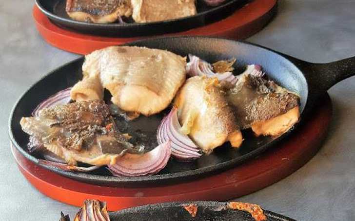 Na rozpálené pánve vložíme odleželé filety a připravenou cibuli. Maso necháme zatáhnout 1 – 2 minuty. Když je maso správně zatažené, jde zlehka obrátit. Otočíme i cibuli. Z druhé strany pečeme zase cca 2 minuty.