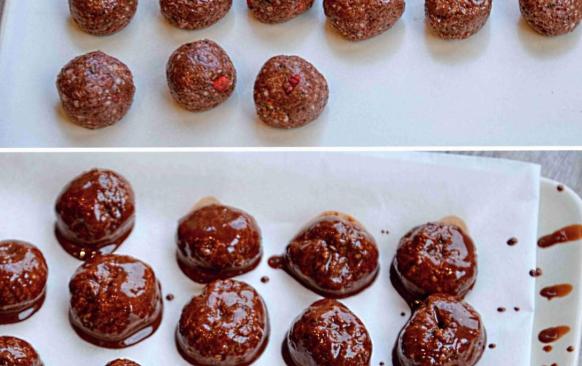 Zbude-li vám čokoláda v kastrůlku, pak ji po vychladnutí kuliček ještě na truffels nakapejte.
