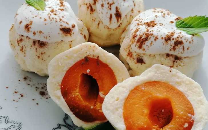 Všechny ingredience smícháme dohromady a vymícháme těsto, které necháme chvilku odpočinout. Poté tvoříme knedlíky pomocí navlhčených rukou, dovnitř dáváme celé meruňky. Knedlíky vaříme ve vroucí vodě, vyndaváme jakmile vyplavou.