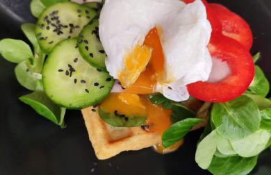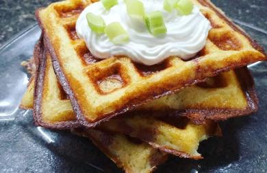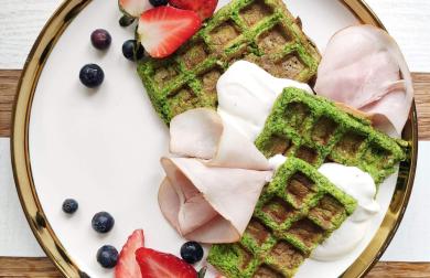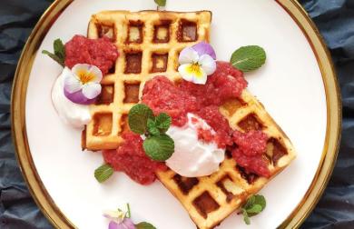 Vše smícháte a postupně upečete ve wafflovači. K tomu můžete dát jogurt či ovoce jako já.