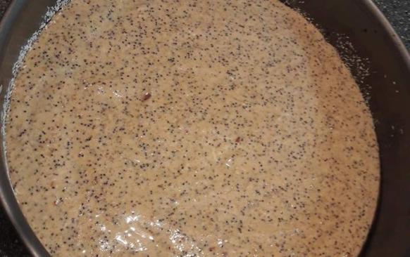 Mezitím si připravíme náplň a horní část. Po upečení, korpus necháme vychladnout a rozřízneme. Naplníme ho půlkou připraveného tvarohu, ale větší část tvarohu necháme na horní část dortu.