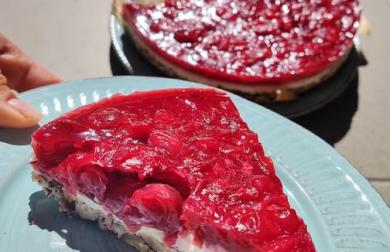 Kromě smetany vše smícháme , nakonec lehce vmícháme tuhý sníh a těsto rozdělíme , polovinu obarvíme kakaem a obě těsta dáme do máslem vymazané formy . Upečeme v předem vyhřáté troubě na 160-180 stupňů asi 50 minut. Vychladlý moučník potřeme kysanou smetanou a posypeme kakaem a oříšky.
