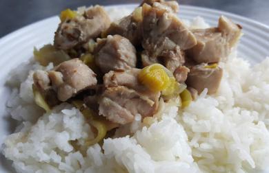 V kastrolu jsem osmažila do červena cibuli, 1/4 celeru, 3 mrkve, pak 1/2 kg masa na kostky, sůl, pepř a podlila jsem vývarem. Přidala jsem na zahuštění asi 30 dkg cukety ( mám v mrazáku od léta ty velké, přerostlé) a v tlakáči dusila 50 minut. Pak jsem maso vybrala na talíř, zeleninu rozmixovala, přidala smetanu na vaření (asi 1/4 l) a ještě dochutila citrónovou šťávou a trošku přiostřila pálivou paprikou.