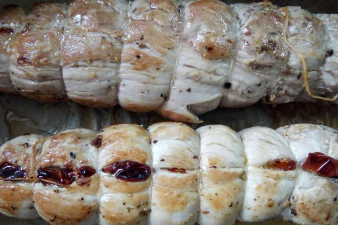 Panenku rozřízneme na slabší plát, z obou stran osolíme a opepříme. Vnitřní stranu poklademe posekanými rajčaty , případně bylinkami. Svineme a upevníme provázkem.
