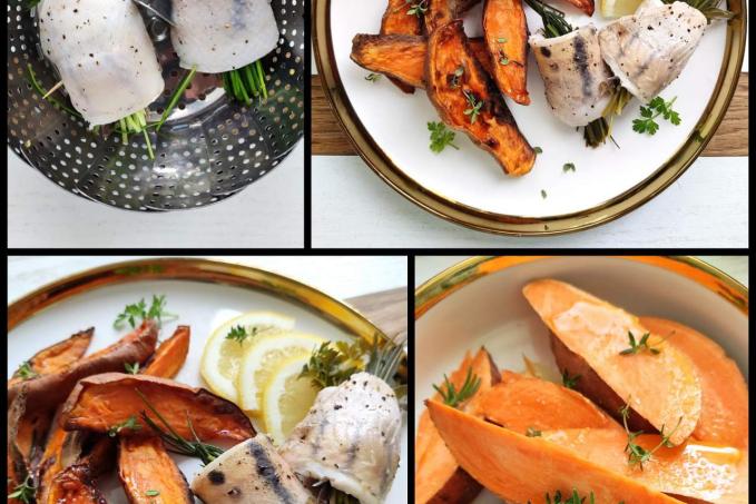 Filety z obou stran osolíme, opepříme a pokapeme citrónovou šťávou. Z bylinek si vytvoříme svazek a zamotáme do filetů, spíchneme párátkem. Víno dáme do hrnce, přikryjeme poklicí a počkáme až začne vařit, pak dáme pařáček s rybou a necháme 10 minut pod poklicí.