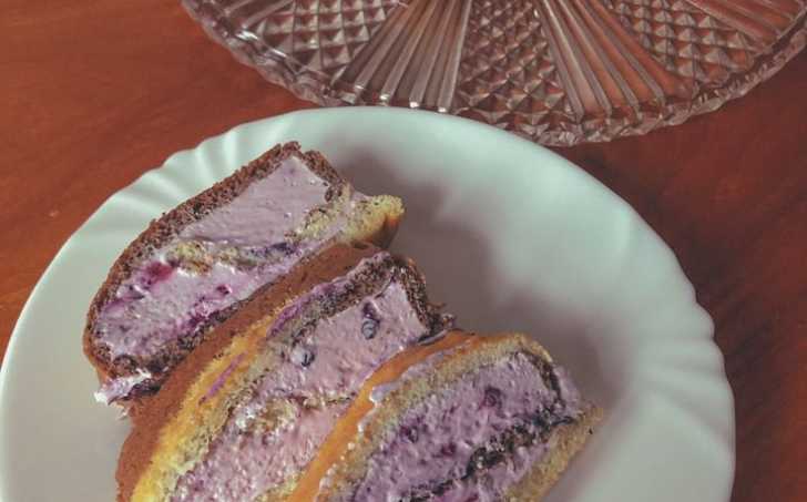 Poté vanilkovým těstem doplníte mezery a pečete dalších cca 10 minut. Mezitím si vyšleháte smetanu, přidáte tvaroh a borůvky. Korpus necháte vychladnout a pomažete krémem. Smotáte a necháte uležet.