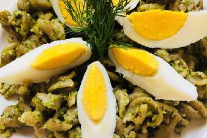 Těstoviny uvaříme jak jsme zvyklí a smícháme s pestem, přidáme vejce, nebo klidně i masíčko a je hotovo.