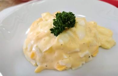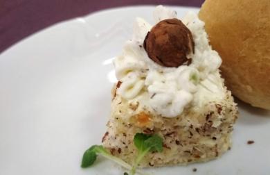 Žemlovka s tvarohem a mandlovými lupínky jako dezert