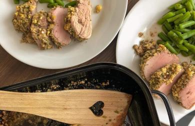 Panenka v hořčici s parmazánovo-ořechovou krustou s bylinkami
